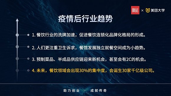 第四,未來餐飲領(lǐng)域?qū)霈F(xiàn)30%的集中度,會誕生30家千億級的公司。
