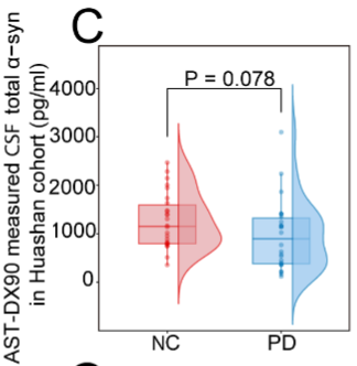 在本研究中,Dx-90平臺(tái)為揭示PD病理機(jī)制提供了重要支持。基于單分子免疫檢測(cè)技術(shù)檢測(cè)腦脊液(CSF)中的總α-syn水平變化:結(jié)果顯示PD患者CSF中總α-syn水平降低,這可能反映了腦內(nèi)α-syn聚集的增加。